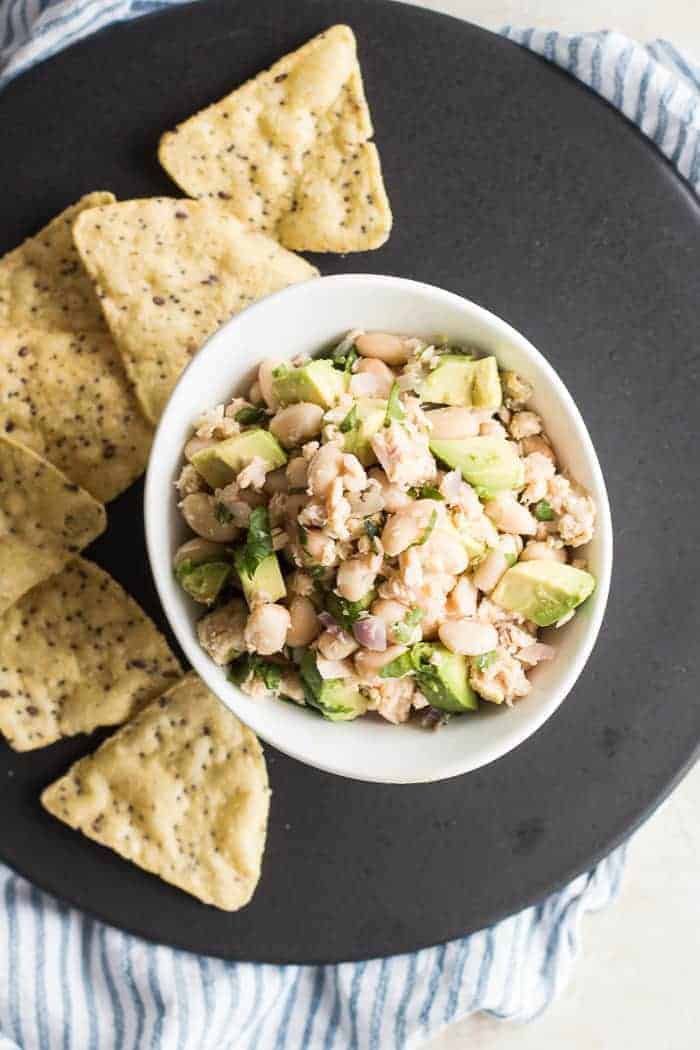 #Salmon | This mayo-free, refreshing yet hearty salmon bean salad couldn’t be easier to make! You can serve with crackers, vegetables, bread, or salad!